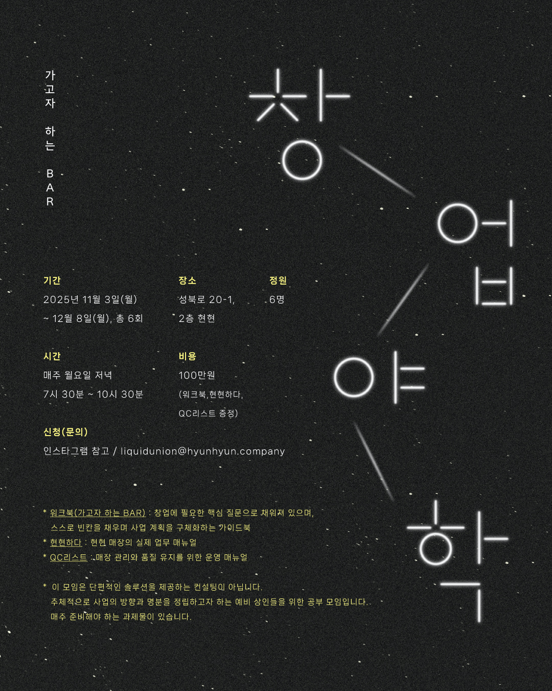 기간 : 2025년 11월 3일 (월) ~ 12월 8일 (월), 총 6회
